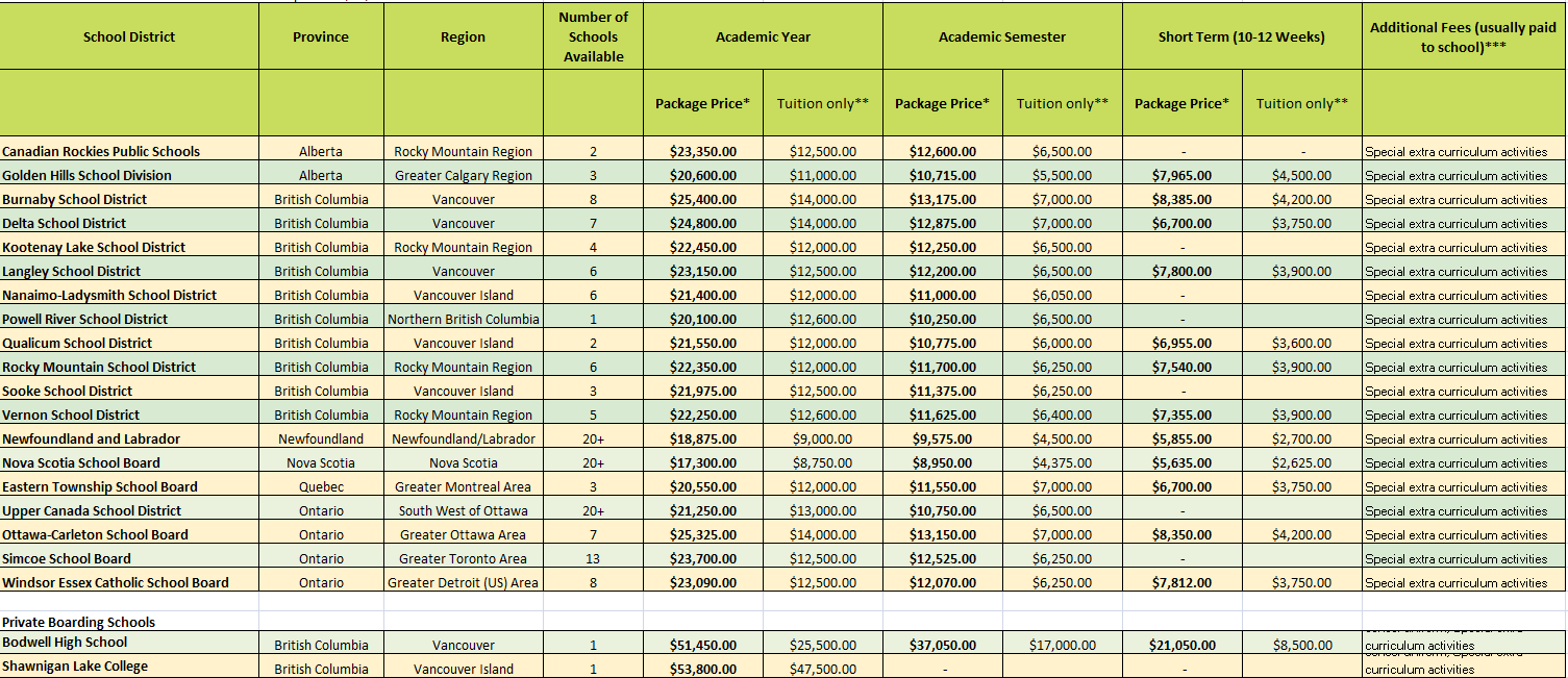 CHI PHÍ DU HỌC CÁC TRƯỜNG THPT CỦA CANADA