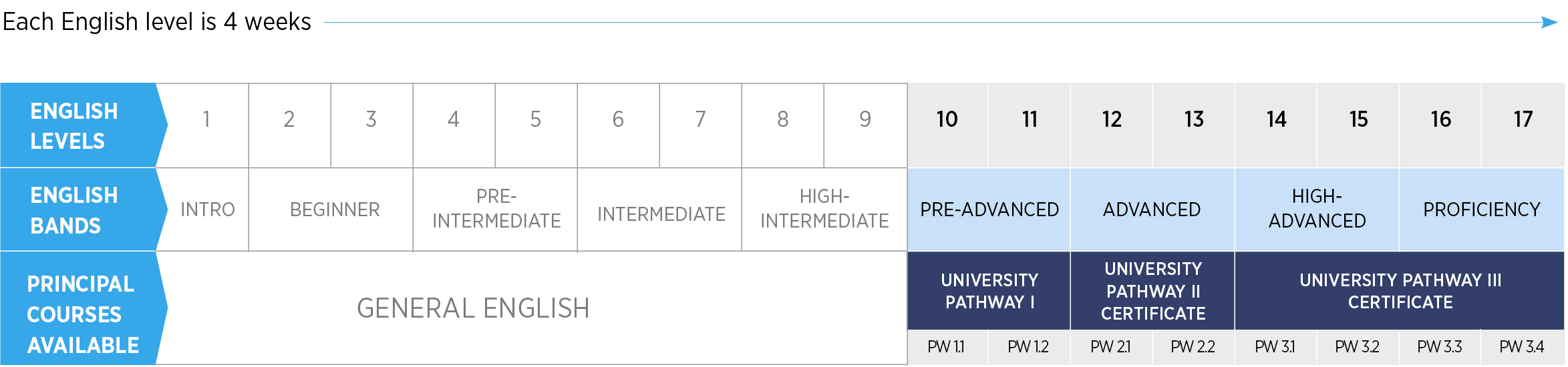 - Kỳ đầu tiên (16 tuần) học tại ILAC: Chương trình University Pathway