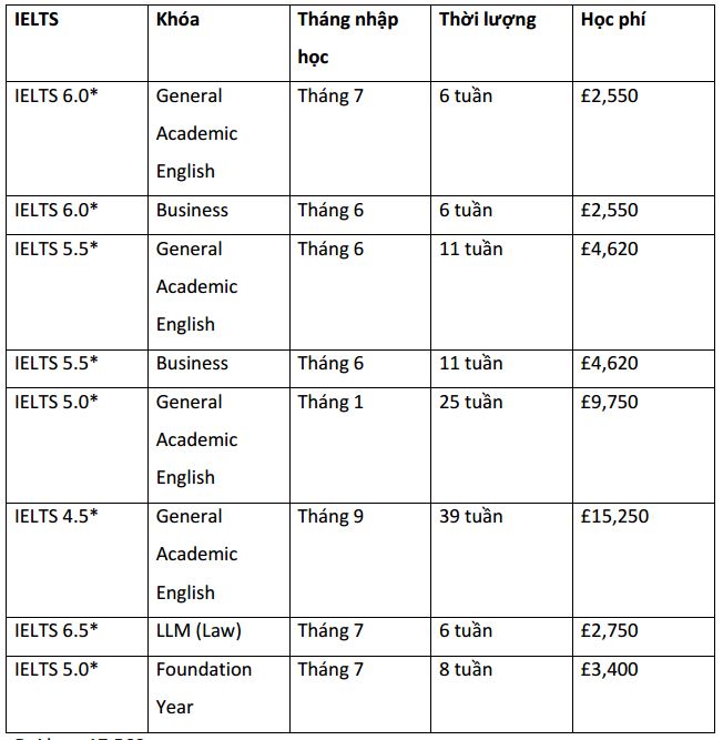 Dự bị Đại học: £17.560 - £18.852/ năm