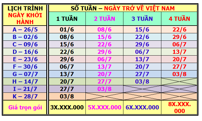 III/ Nhiều lịch trình phong phú khởi hành hàng tuần và giá tiền trọn gói: