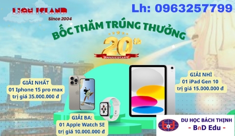 CHƯƠNG TRÌNH DU HỌC HÈ SINGAPORE LION ISLAND 2024 Năm 2024, DU HỌC HÈ SINGAPORE LION ISLAND kỷ niệm 20 năm hoạt động, đã tổ chức thành công hàng trăm chuyến đi với sự tham gia của hàng ngàn học sinh Việt Nam. Nhân dịp kỷ niệm này học viên đăng ký tham gia chương trình có cơ hội bốc thăm trúng thưởng phần quà trị giá cao nhất 35.000.000 VND. Rất nhiều khuyến mại đặc biệt và khuyến mại thông thường cho học viên đăng ký chương trình. Liên hệ với Du học Bách Thịnh để được tư vấn chi tiết. Đối...
