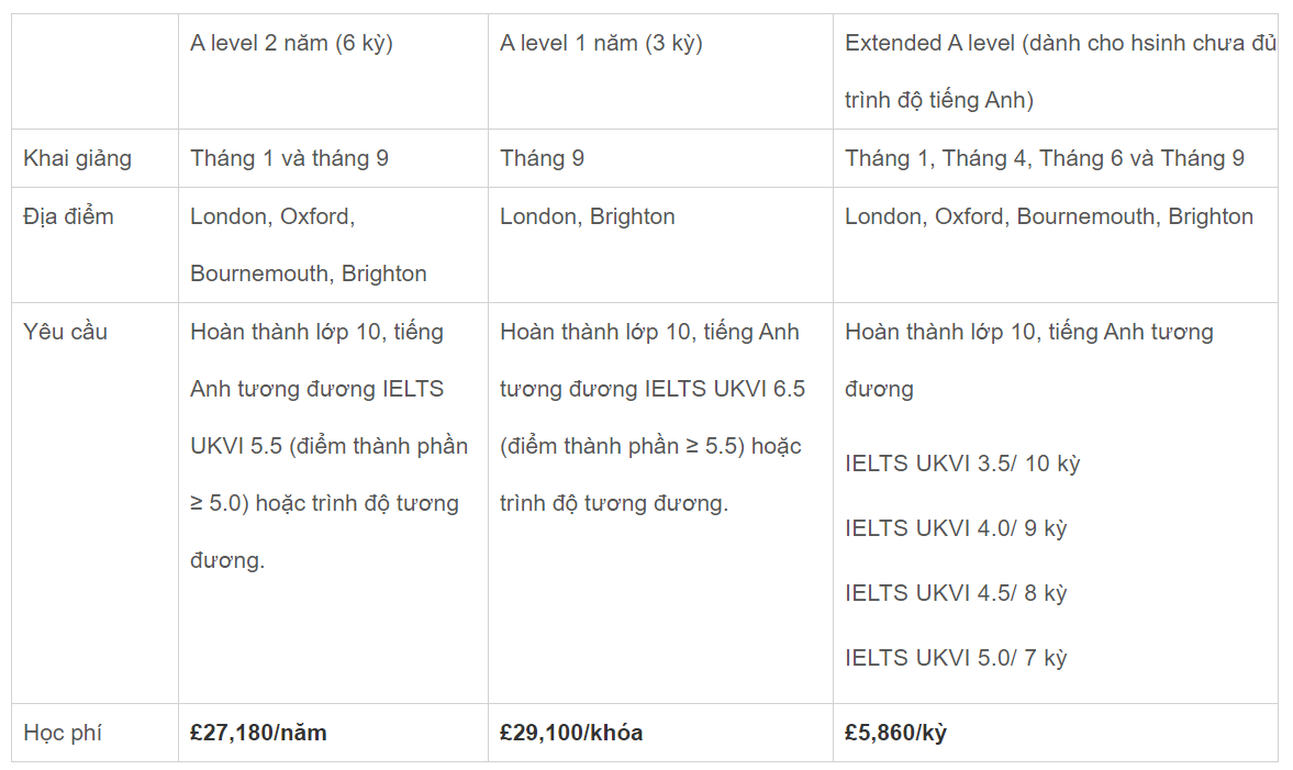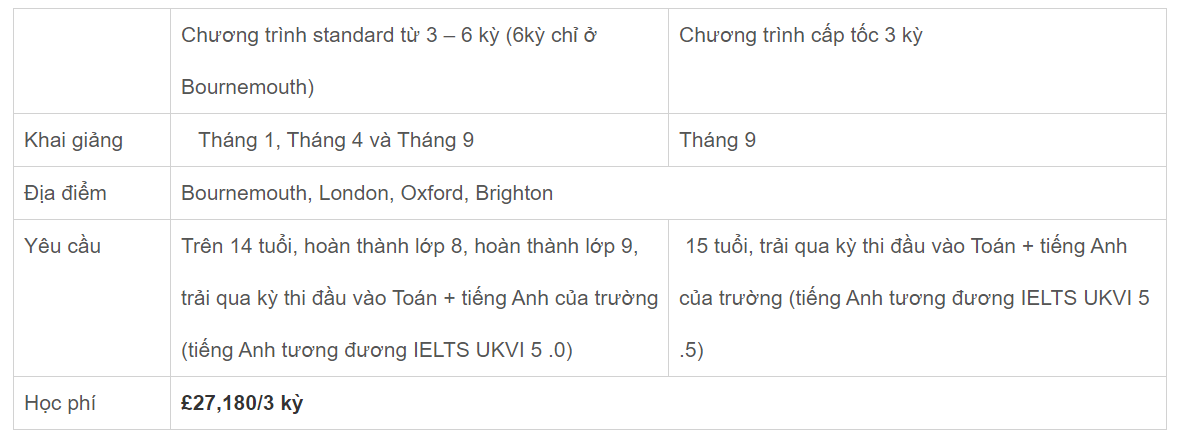 - Học phí: £21,780/ khóa (3 kỳ)