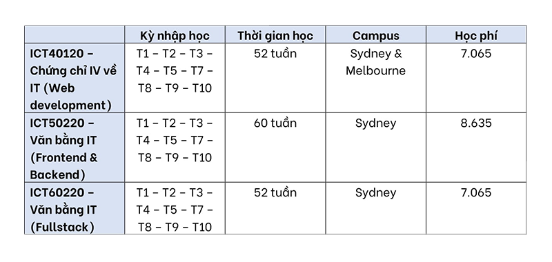 Các khóa học được công nhận theo khung AQF Level 7 – Khung bằng cấp tại Úc và chịu trách nhiệm cấp chứng chỉ AQF.