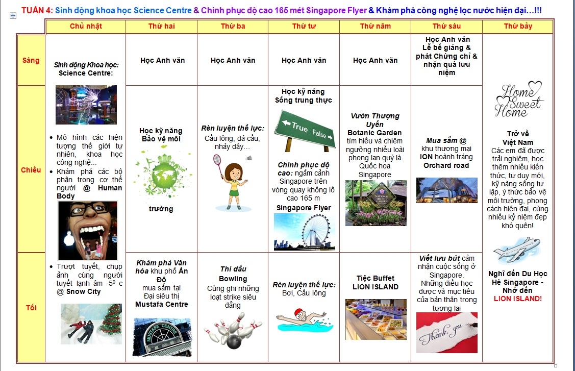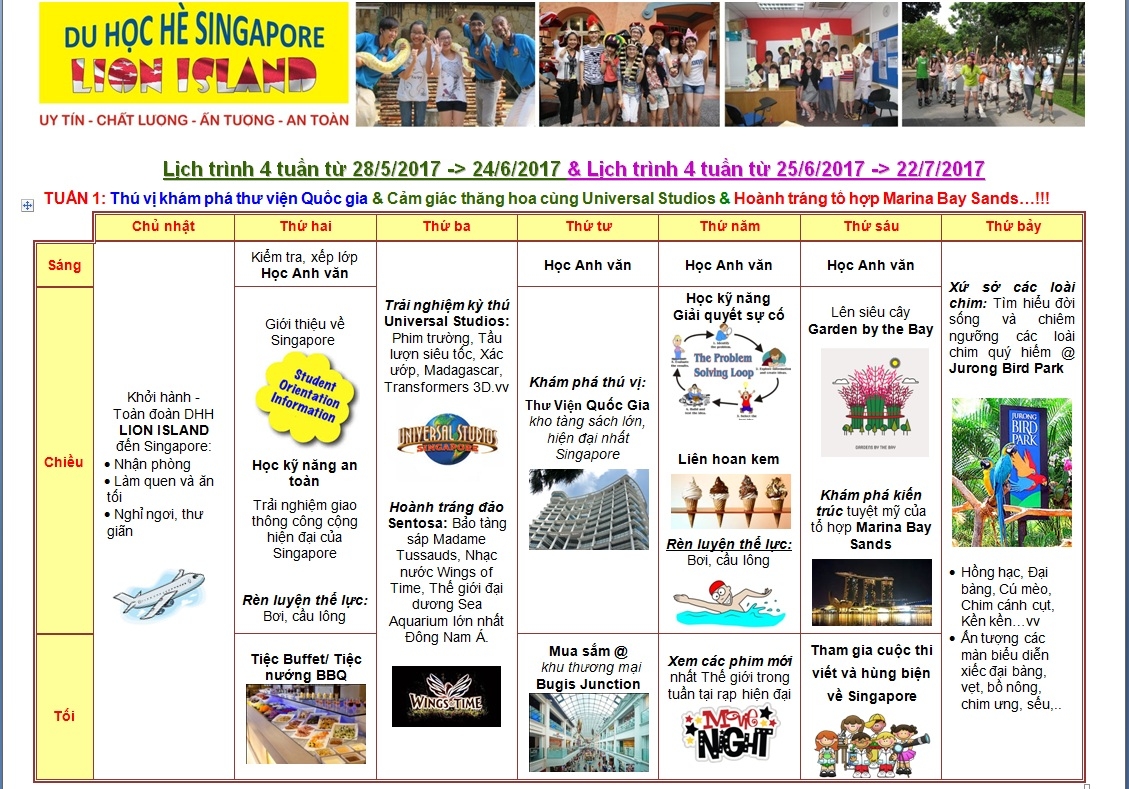 Lịch trình chi tiết Du học hè Singapore LION ISLAND 2017