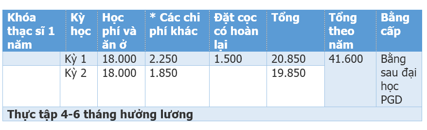 - Yêu cầu nhập học: Có bằng Cử nhân chuyên ngành bất kỳ và IELTS 6.0, tối thiểu 21 tuổi