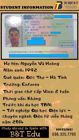 Cùng B&T chúc mừng các bạn sinh viên đã xuất sắc đạt được Visa Tây Ban Nha thành công khi quyết định đăng ký nhập học khóa tiếng Tây Ban Nha trong năm 2017 tại trường Enforex qua dịch vụ tư vấn du học của B&T nhé!