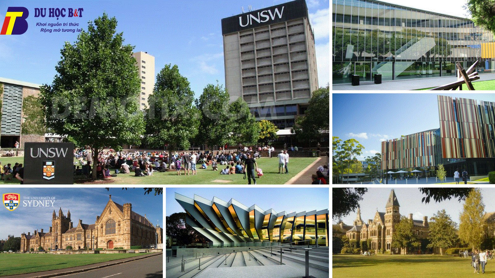 Úc có tất cả 41 trường Đại học, trong đó có 38 trường Đại học công lập (được hỗ trợ từ ngân sách của Chính phủ) và 3 trường Đại học tư thục. Du học sinh có thể theo học các chương trình Đại học (Bachelor degree – Văn bằng Cử nhân), hoặc các chương trình Sau đại học, bao gồm: Văn bằng Sau đại học (Graduate Certificate), Chứng chỉ khóa học Sau đại học (Graduate Diploma), Thạc sĩ (Master) và Tiến sĩ (PhD).