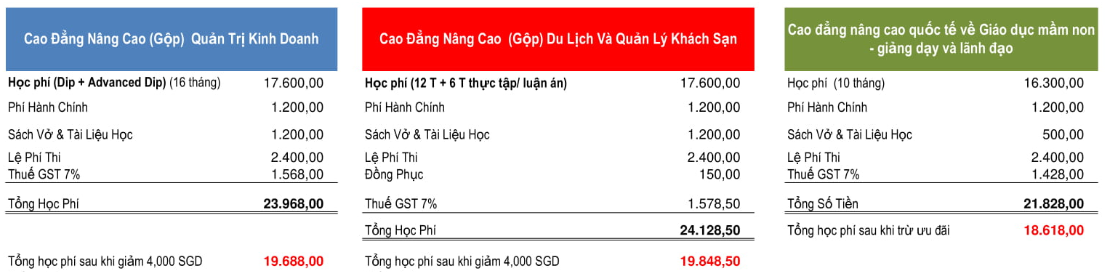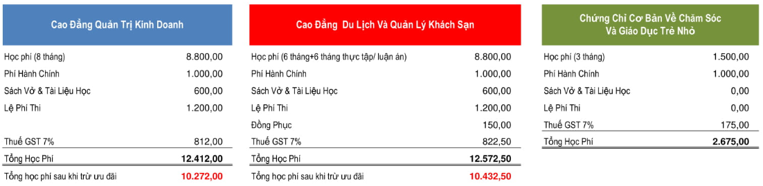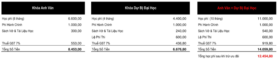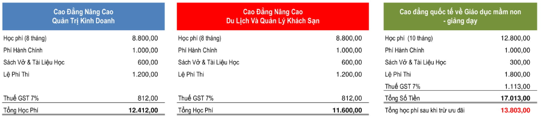 . Hệ Advance Diploma (Năm 1 & 2) - $3.000 + $1.000 (hỗ trợ Covid)